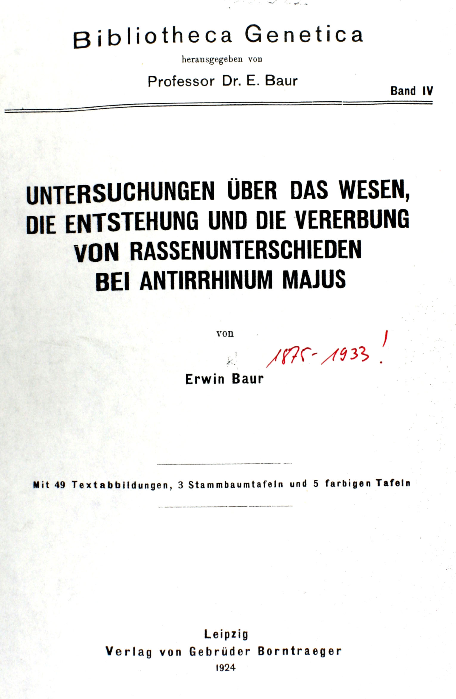 Untersuchungen über das Wesen, die Entstehung und die Vererbung von Rassenunterschieden bei Antirrhinum majus (1924)