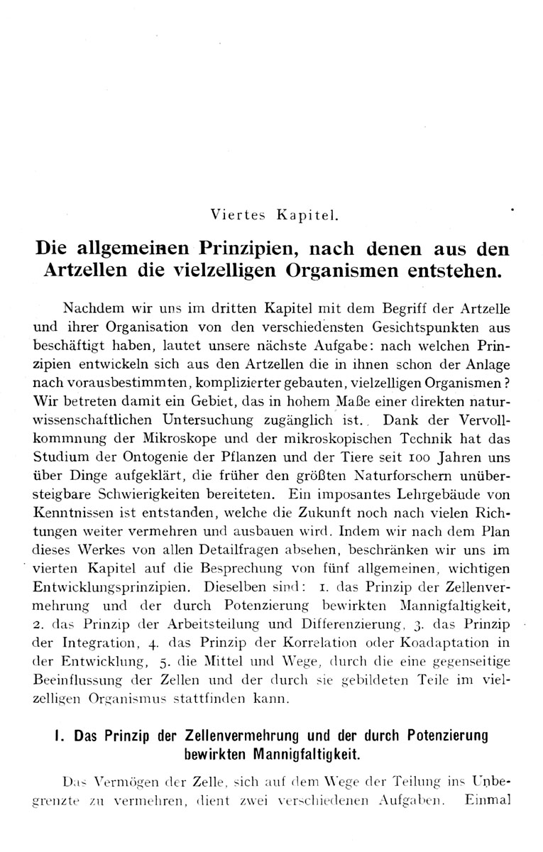Viertes Kapitel. Die allgemeinen Prinzipien, nach denen aus den Artzellen die vielzelligen Organismen entstehen.