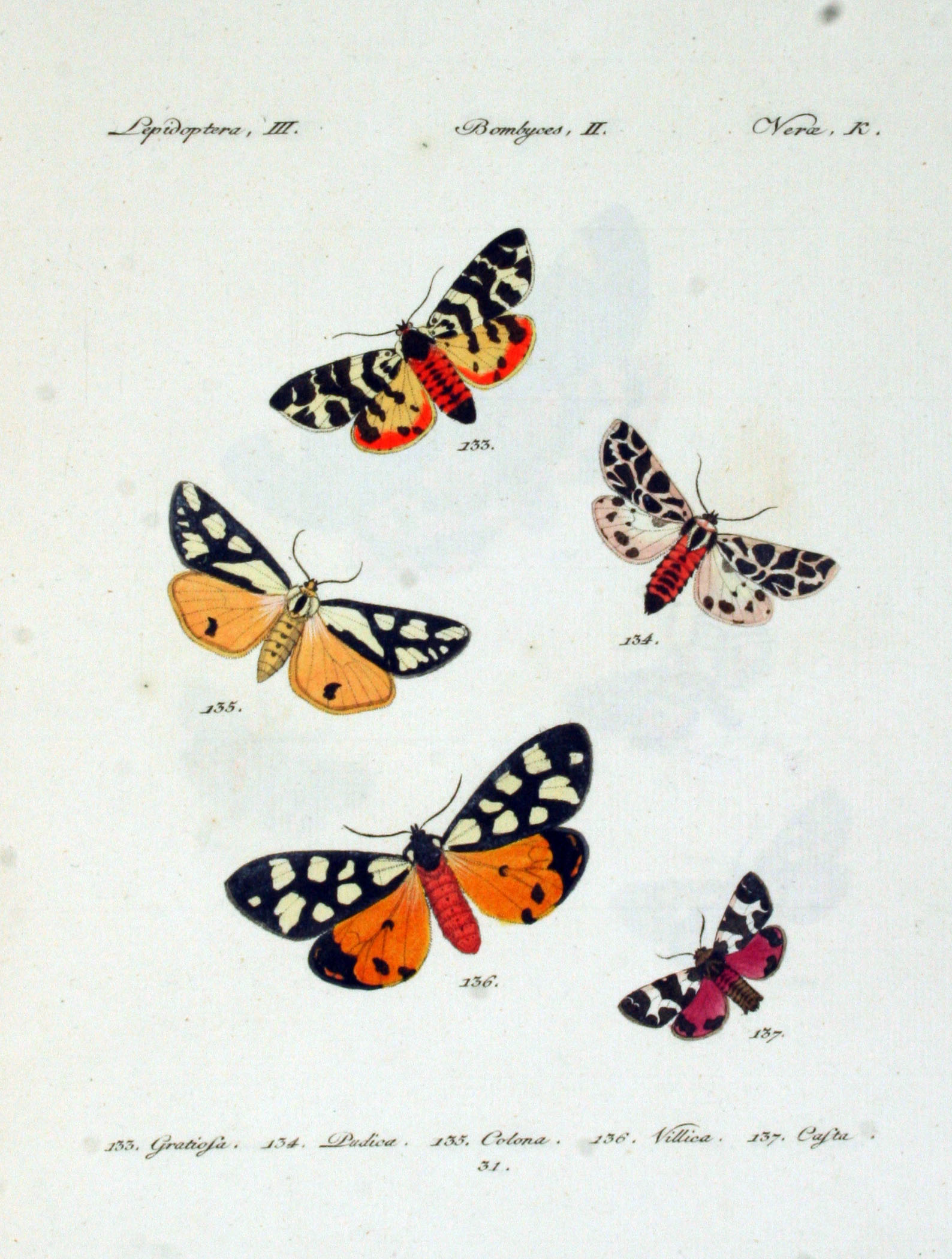 Bombyx gratiosa; Bombyx padica; Bombyx colona; Bombyx villica; Bombyx casta Tafel 31 Hochaufgelöstes Bild |