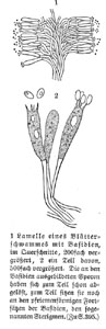 Lamelle eines Blätterschwammes mit Basidien .