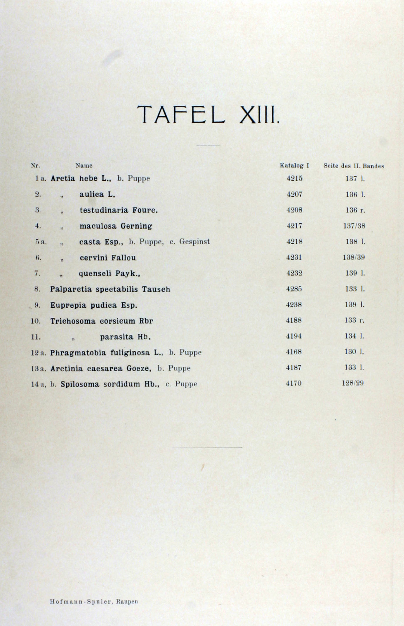 Euphorbia helioscopia; Erythraea centaureum; Cichorium intybus; Galium aparine; Asperula ododrata; Galeopsis versicolor Arctia hebe; Arctia aulica; Arctia testudinaria; Arctia maculosa; Arctia casta; Arctia cervini; Arctia quenseli; Palparctia spectabilis; Euprepia pudica; Trichosoma corsicum; Trichsomoa parasita; Phragmatobia fuliginosa; Arctinia caesarea; Spilosoma sordidum Hochaufgelöstes Bild |