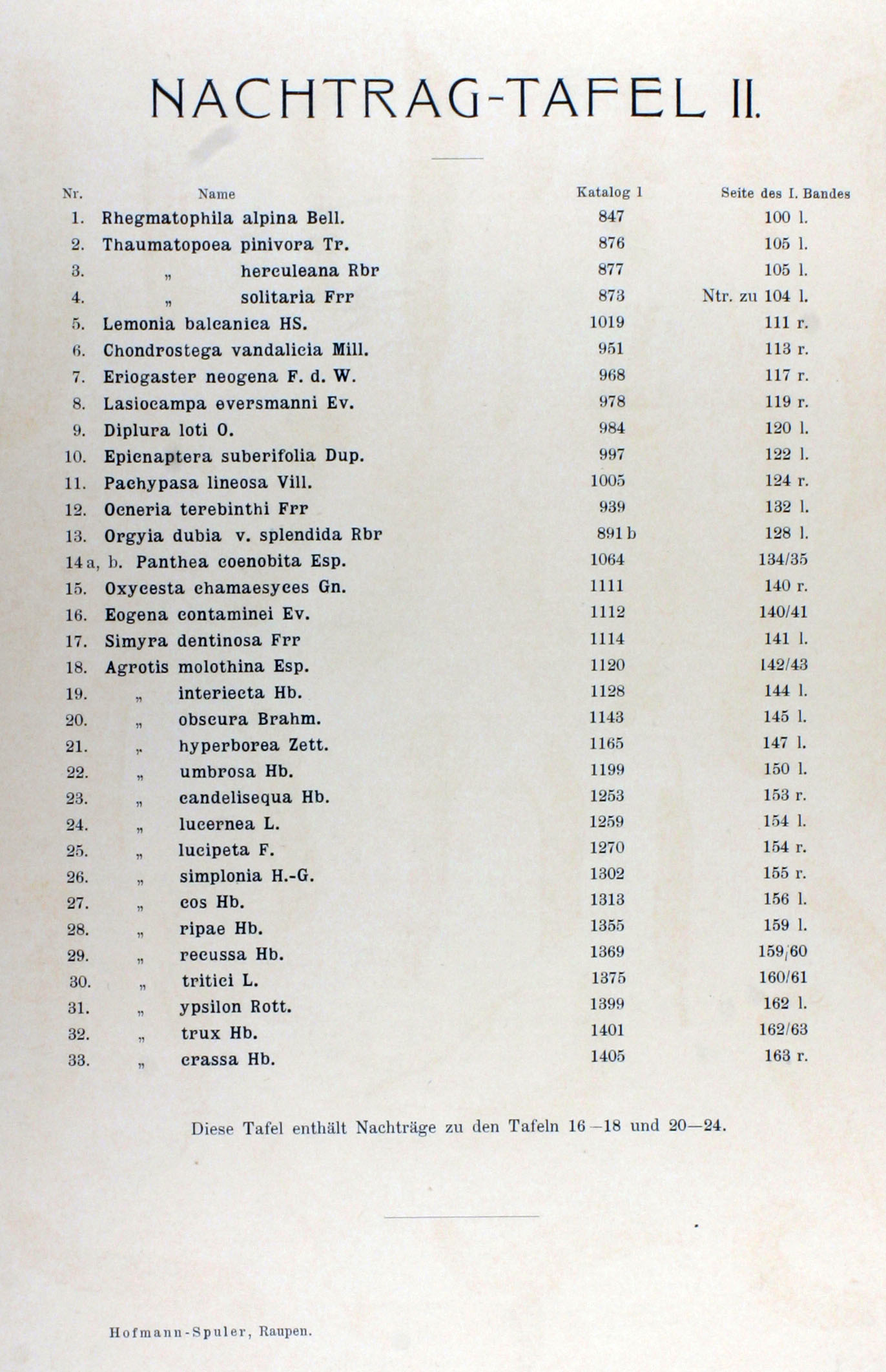 Rhegmatophila alpina; Thaumatopoea pinivora; Thaumatopoea herculeana; Thaumatopoea solitaria; Lemonia balcanica; Chondrostega vandalicia; Eriogaster neogena; Lasiochampa eversmanni; Diplura loti; Epicnaptera suberifolia; Pachypasa lineosa; Ocneria terebinthi; Orgyia dubia v. splendida; Panthea coenobita; Oxycesta chamaesyces; Eogena contaminei; Simyra dentinosa; Agrotis molothina; Agrotis interiecta; Agrotis obscura; Agrotis hyperborea; Agrotis umbrosa; Agrotis candelisequa; Agrotis lucernea; Agrotis lucipeta; Agrotis simplonia; Agrotis cos; Agrotis ripae; Agrotis recussa; Agrotis tritici; Agrotis ypsilon; Agrotis trux; Agrotis crassa Hochaufgelöstes Bild |