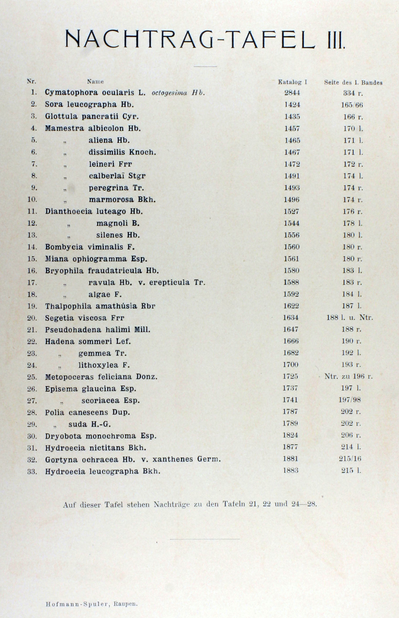 Cymatophora ocularis; Sora leucographa; Glottula pancratii; Mamestra albicolon; Mamestra aliena; Mamestra dissimilis; Mamestra leineri; Mamestra calberlai; Mamestra peregrina; Mamestra marmorosa; Dianthoecia luteago; Dianthoecia magnoli; Dianthoecia silenes; Bombycia viminalis; Miana ophiogramma; Bryophila fraudatricula; Bryophila ravula v. erepticula; Bryophila algae; Thalpophila amathusia; Segetia viscosa; Pseudohadena halimi; Hadena sommeri; Hadena gemmea; Hadena lithoxylea; Metopceras feliciana; Episema glaucina; Episema scoriacea; Polia canescens; Polia suda; Dryobota monochroma; Hydroecia nictitans; Gortyna ochraceea v. xanthenes; Hydroecia leucographa Hochaufgelöstes Bild |